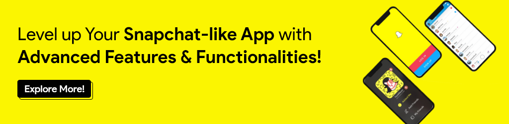 #4 Features & FunctionalitiesIf you want to build a Snapchat-like app with basic features and functionalities, it will cost you less. On the contrary, incorporating advanced features similar to Snapchat in your app will consume more time and cost, and curate you as just another social media app.